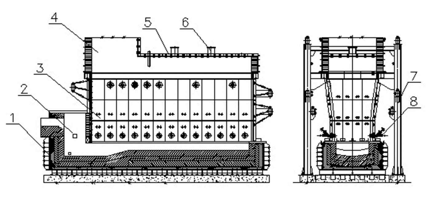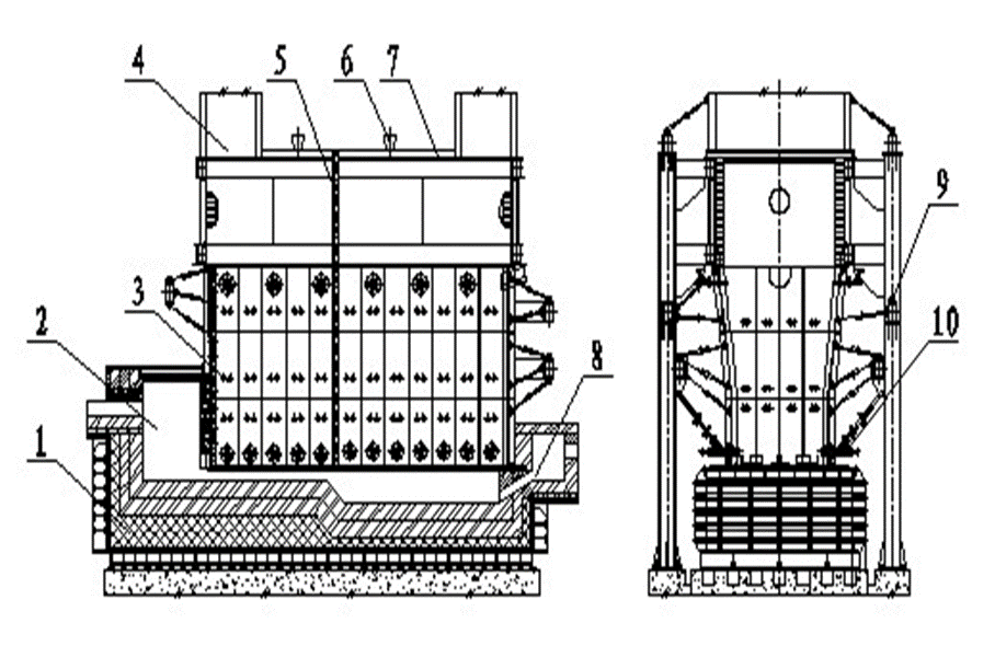 7—炉顶;8—虹吸道;9—钢架;10—风嘴